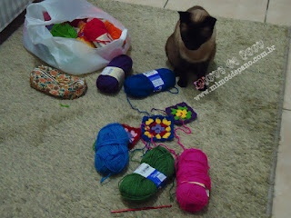 Crocheteiras Andrea ( Mil Pontinhos / Joanóca Brasil) de quem aprecio demais o trabalho, além das sensatas opiniões sobre muitos temas, hehe! E querida Jussara ( Artesanato Gatos Mimados ) que me enviou fotos de uma colcha (linda!) como a que estou fazendo (com gato em cima e tudo!) pra me incentivar.